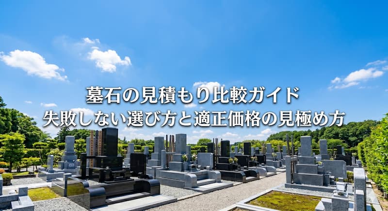 3. 複数社から見積もりを取って、具体的な金額を把握する 相場を知った上で、自分の希望条件(地域・石種・デザイン・墓地タイプ)に合った具体的な見積もりを取りましょう。1社だけでは適正価格がわかりません。